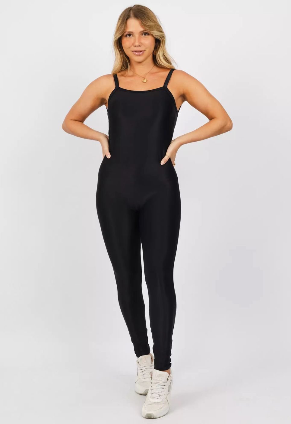Macacão fitness de alta compressão, com bojo removível e zero transparência.