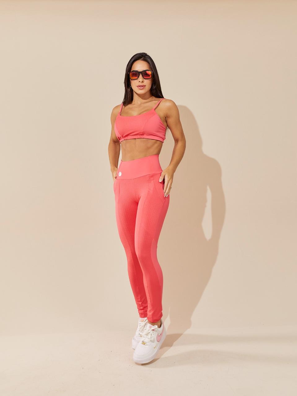 Conjunto confeccionado em poliamida com elastano, de toque suave , tecido com textura nos detalhes e zero transparência. Oferece conforto, elasticidade e sustentação, com cós modelador e top de alta firmeza.