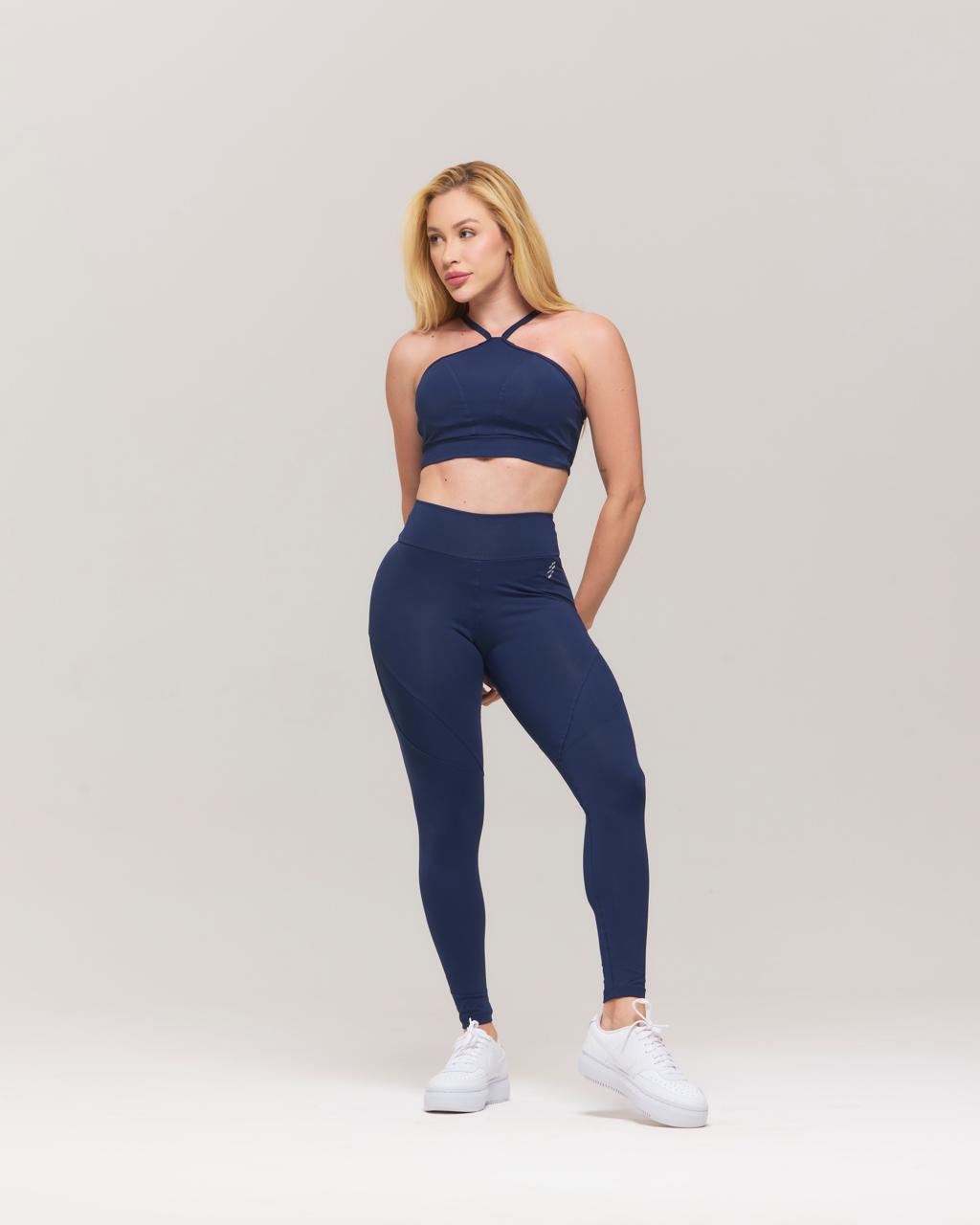 Conjunto em poliamida com elastano, sustentação e estilo para treinos.