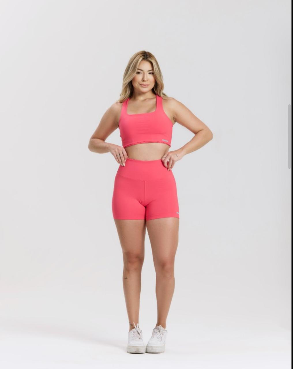 Conjunto fitness confeccionado em poliamida com elastano, que oferece firmeza, elasticidade e conforto. Destaque para o detalhe refletivo que traz estilo e segurança, e o top modelo nadador que garante sustentação durante o treino. Disponível na cor coral, tamanhos M e G.