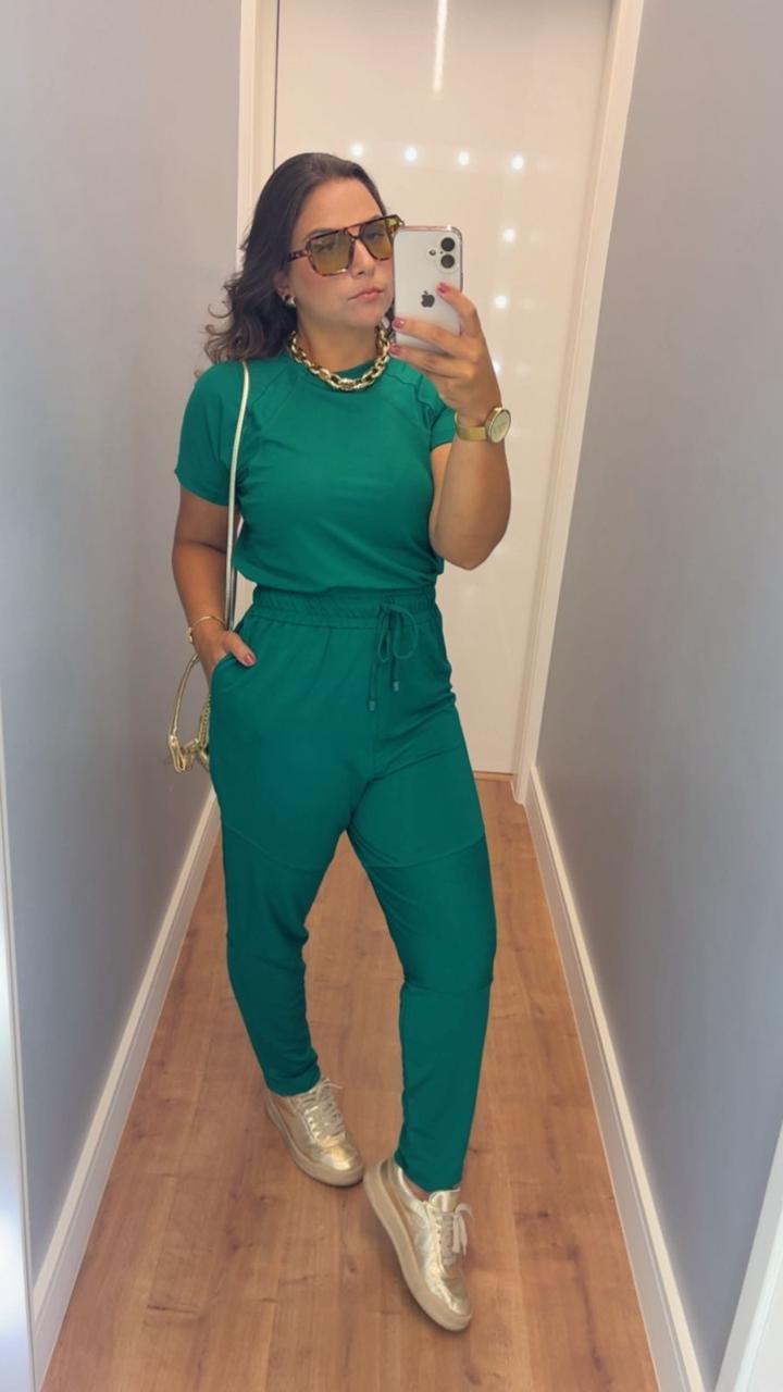 Conjunto em moletinho leve e elástico, ideal para composições modernas e confortáveis.